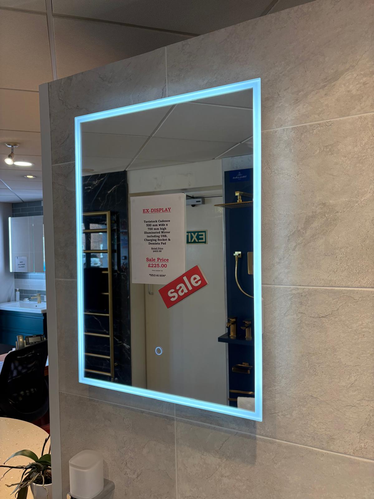 Tavistock Cadence 500mm Wide x 700mm High Illuminated Mirror c/w USB, Charging Socket and Demister Pad